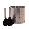 Lighter with a capacity of 2kg, made of stainless steel with a wooden handle. Ideal for lighting our coconut shell charcoal.